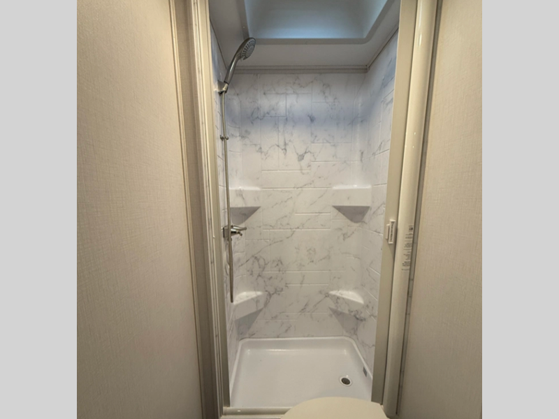 Each model includes the EZ Ryde premium suspension for an exception driving experience, along with a 10" touchscreen CarPlay/Android radio with USB and Bluetooth so you can listen to your favorite tunes as you travel. There is a keyless entry you are sure to appreciate plus blackout roller shades in the living room and bedroom for added privacy. Each coach also features a gel coat exterior fiberglass, a fiberglass roof and 2" aluminum framed laminated sidewalls for added durability.